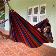Die brasilianischen Hängematten sind handgewebt in einem festen Tuchgewebe aus 100% Baumwolle. Die brasilianischen Hängematten sind in brillanten Farben mit einem wunderbaren Liegekomfort.